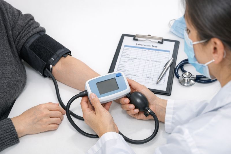 - Фізикальне обстеження — вимірювання артеріального тиску, пульсу, ритму серця, антропометричні показники (зріст, вага, ІМТ).