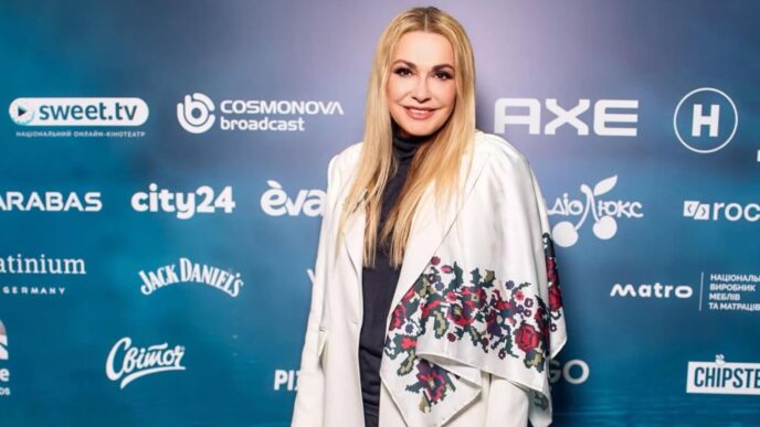 Стиль Ольги Сумської 2026: білий жакет і хустина з українським принтом