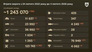 • Загальні бойові втрати ворога на 4 лютого 2026 року