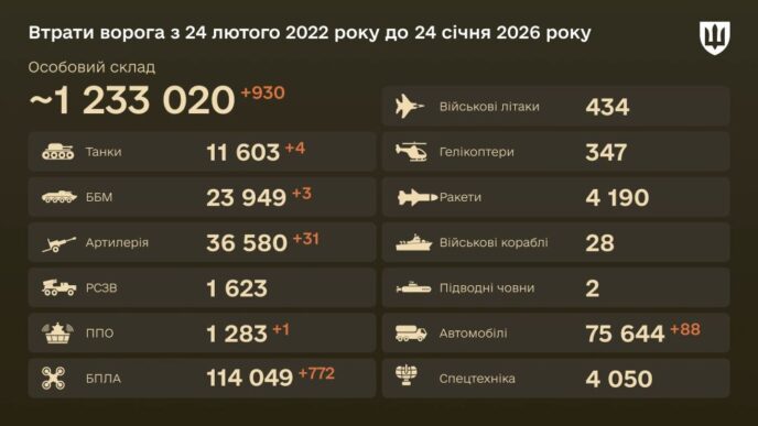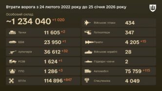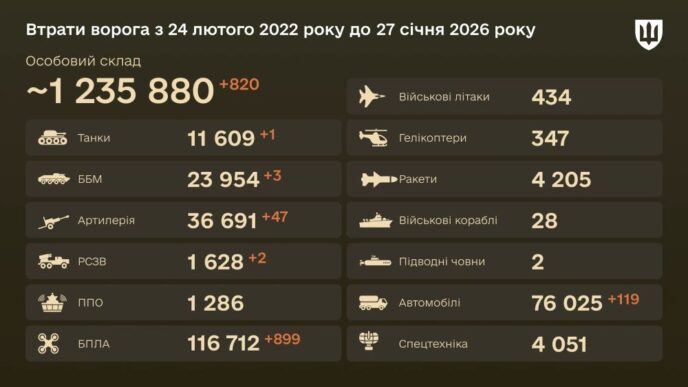 Бойові втрати ворога на 27 січня 2026 року – статистика Генштабу