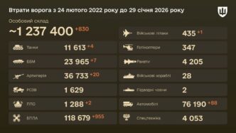 Бойові втрати ворога на 29 січня 2026 року – свіжа інформація від Генштабу