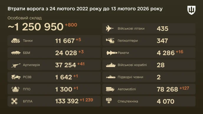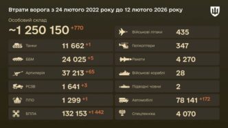 Орієнтовні бойові втрати ворога на 12 лютого 2026 року