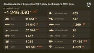 Бойові втрати російських окупантів на 8 лютого 2026 року