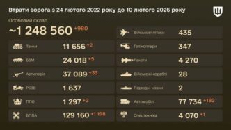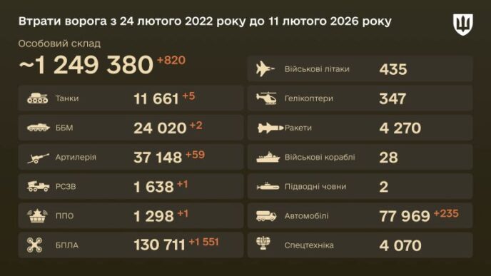 Загальні бойові втрати ворога на 11 лютого 2026 року