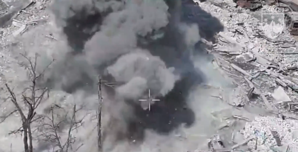Операція на Куп’янському напрямку розпочалася з масованого вогневого ураження. Бійці та пілоти полку «Скеля» зосередили увагу на ворожих укріплених позиціях, що були облаштовані серед руїн будівель. На відео зафіксовано серію точних ударів, які призвели до детонації та повного знищення об’єктів, де переховувався особовий склад ворога. Хмари диму та пилу свідчать про високу потужність використаних засобів ураження.