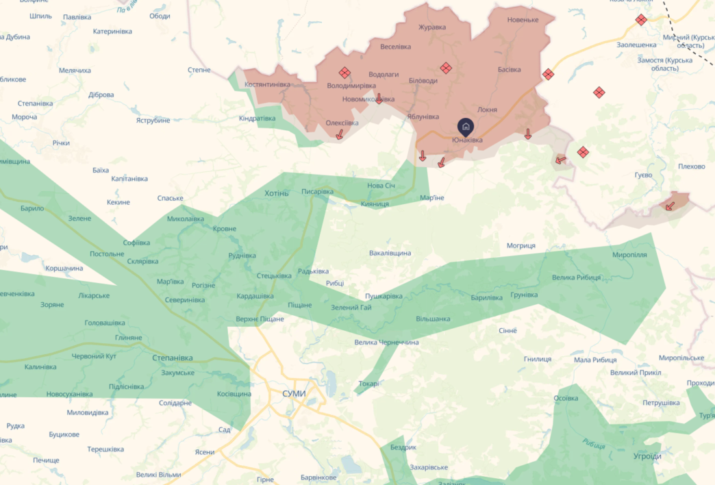 - Активні бої тривають біля Хотіні, яка повністю контролюється українськими силами.