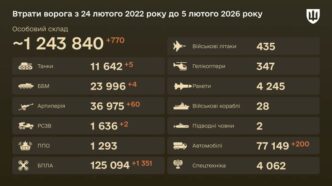 Війна Ліквідували понад 1000 військових РФ та 239 БпЛА – оновлені дані Генштабу за 01.12.2025 01.12.2025