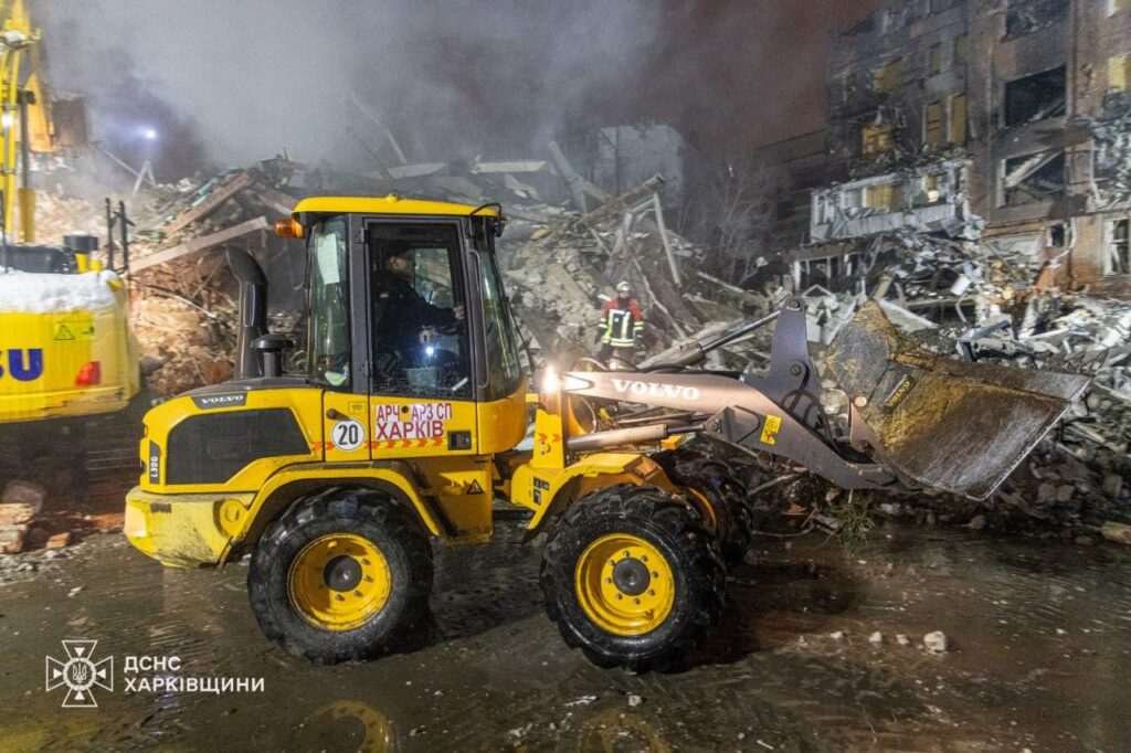 3 січня в Харкові рятувальники Державної служби з надзвичайних ситуацій продовжили пошуково-рятувальну операцію на місці руйнувань, спричинених російським ракетним ударом напередодні. Під завалами зруйнованої багатоповерхівки виявлено тіло жінки, що стало другою підтвердженою жертвою атаки.